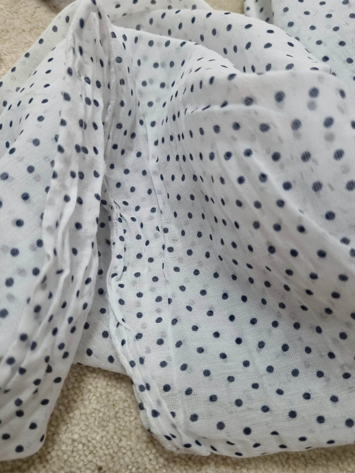 Apaszka Kiria Asymetryczna Szal Małe Kropki Granatowe Biała 150x80
