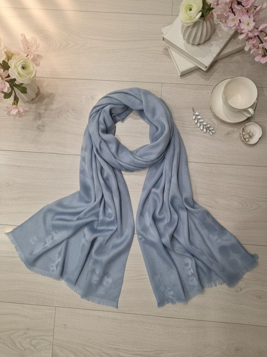 Apaszka Szal Loriena - delikatny błękit i subtelny połysk w eleganckim wydaniu