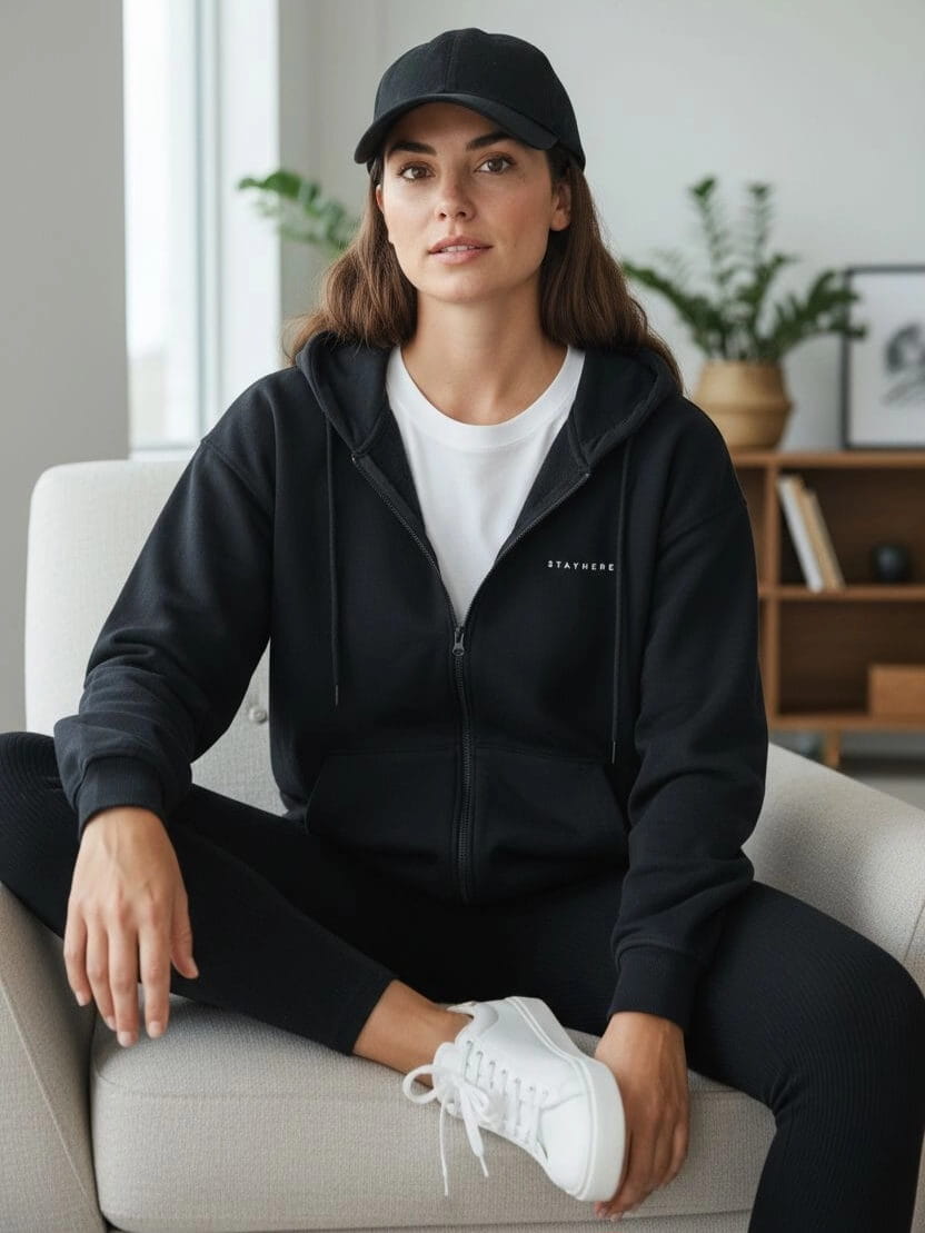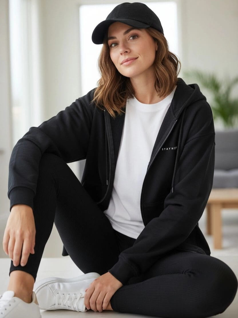 Wybierz wygodę, która zawsze wygląda stylowo. Bluza rozpinana StayHere to must-have sezonu – noś ją z dżinsami, kolarkami lub dobierz nasze prążkowane legginsy (rozmiary S/M, L/XL), aby stworzyć spójny, modny look na co dzień.