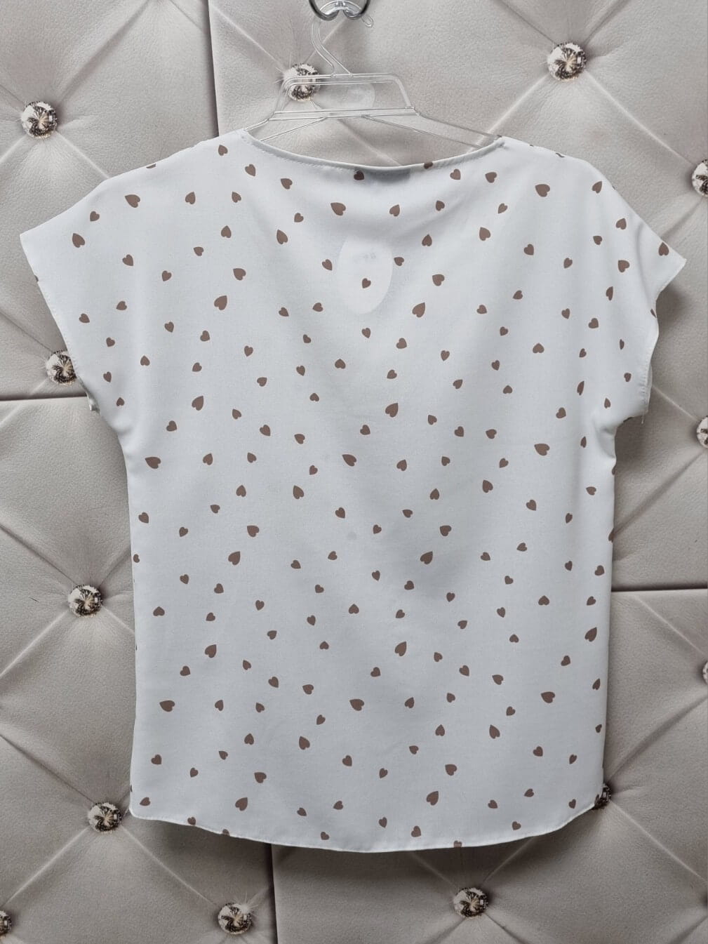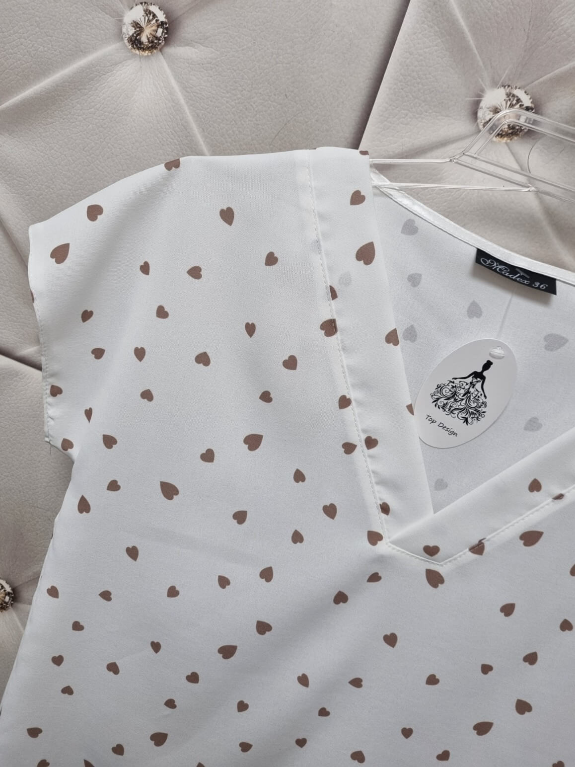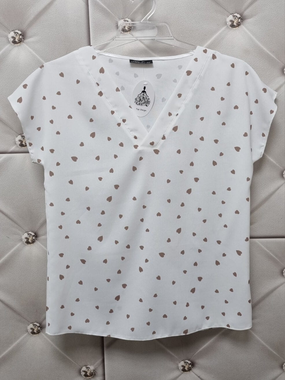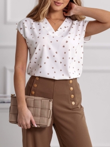 Bluzka Bianka dekolt V Madex 36-50 Biała Serduszka Beżowe |Butik Szykownia