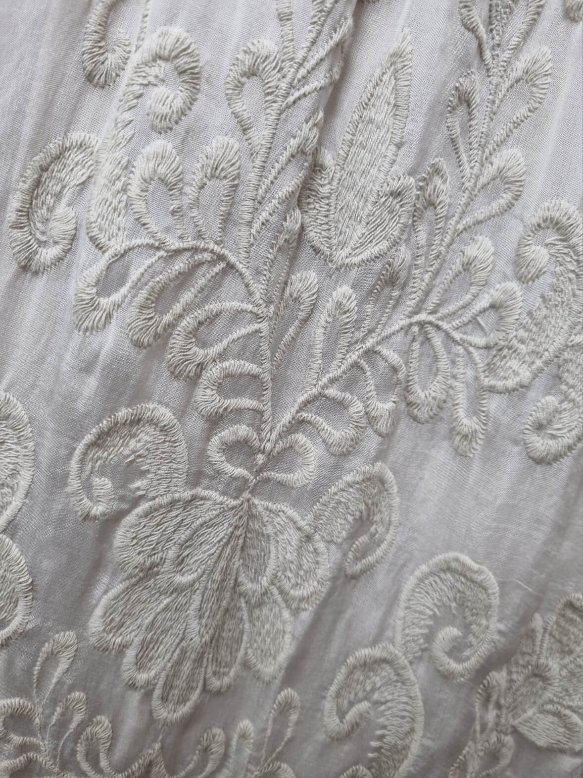 Elegancka i pełna wdzięku – bluzka Celestine to wyjątkowy model, który zachwyca subtelnym wykończeniem i lekkością materiału. Dekolt ozdobiony jest ażurową koronką, przez którą delikatnie prześwituje skóra, nadając całości romantycznego charakteru. Z przodu wyróżniają się piękne, tłoczone hafty kwiatowe w stylu richelieu na wierzchniej, jedwabistej tkaninie.