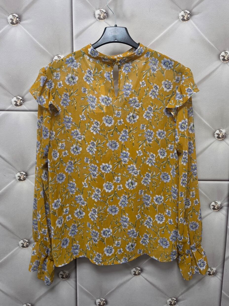 Bluzka Elviana to kobiecy model w modnym musztardowym kolorze ozdobiony subtelnym kwiatowym printem w odcieniach błękitu, bieli i zieleni. Lekki materiał pięknie układa się na sylwetce i zapewnia komfort noszenia przez cały dzień.