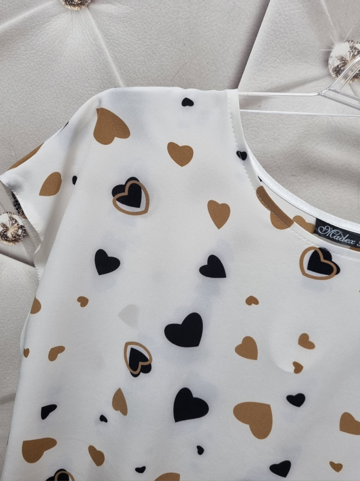 Bluzka Madex Dekolt Okrągły Serduszka Mix Biała |Butik Szykownia