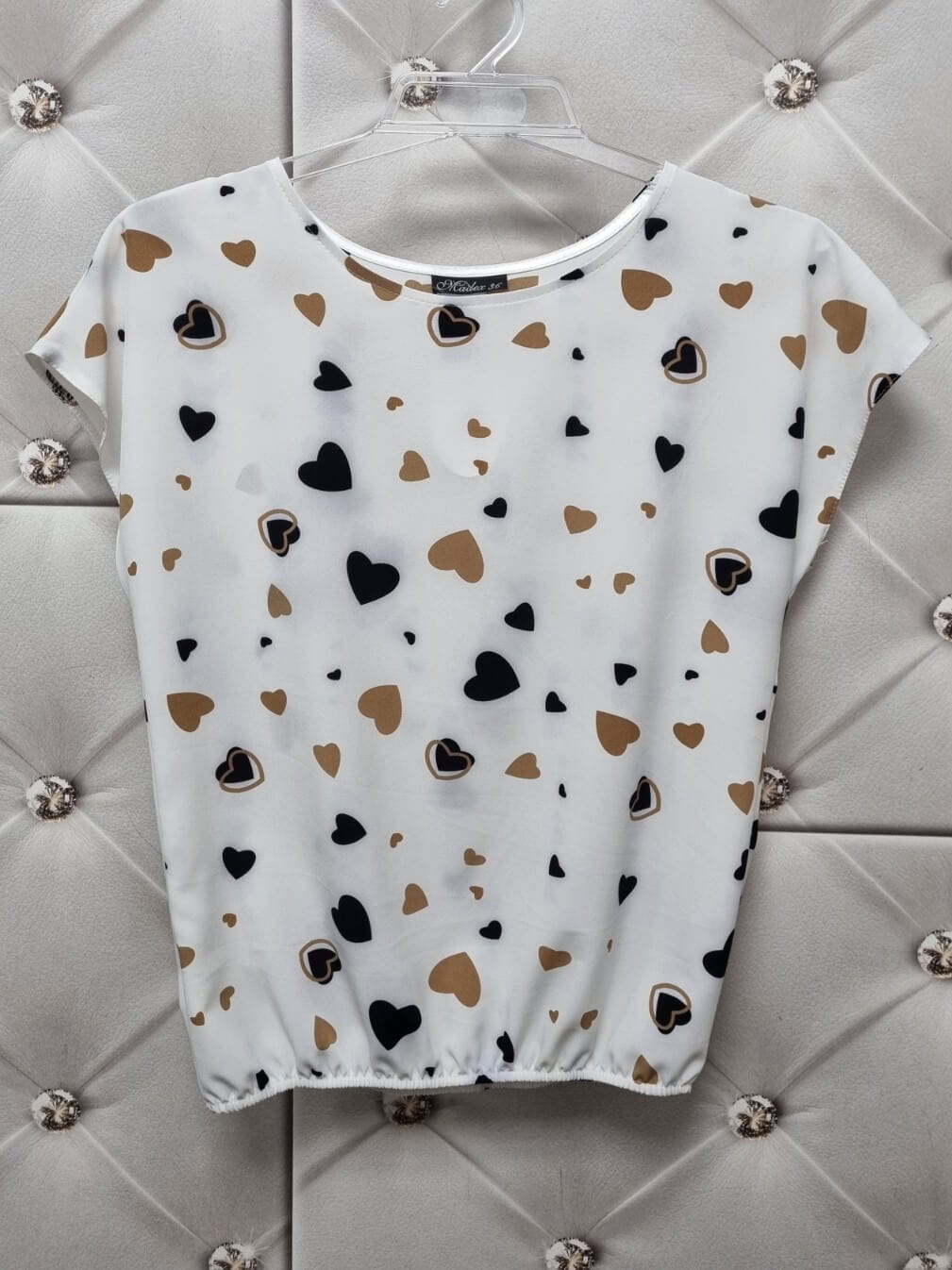 Kolor: Biały w beżowe i czarne serca