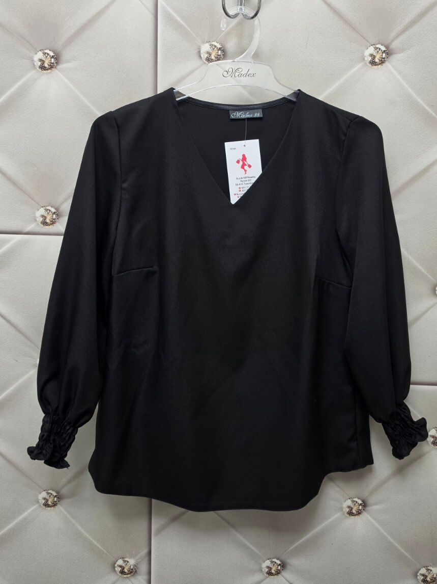 Bluzka Madex Sonia czarna dekolt V rękaw 7/8 marszczone rękawy