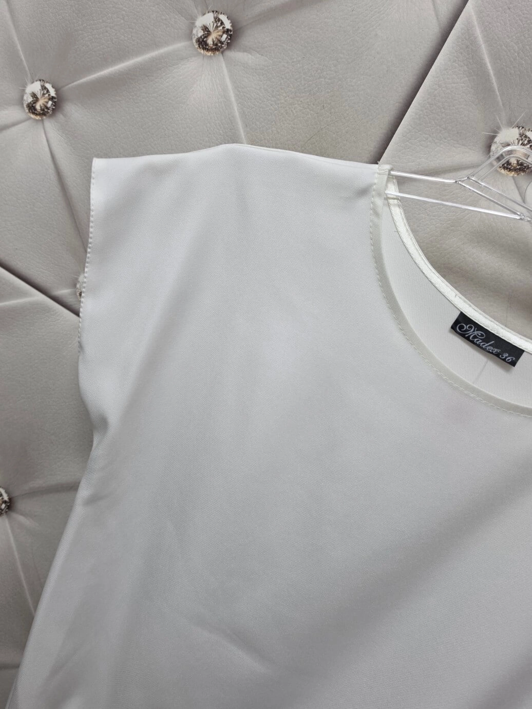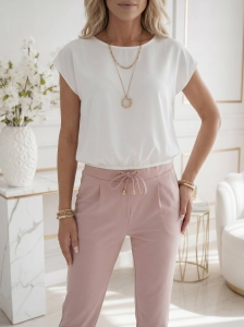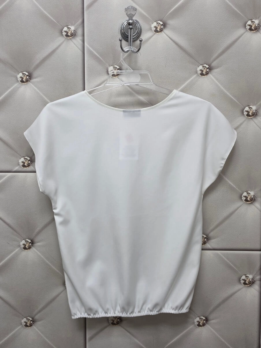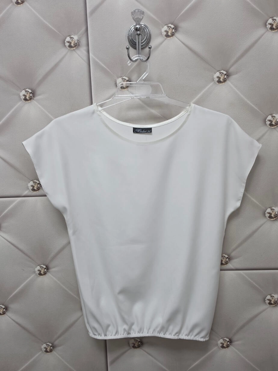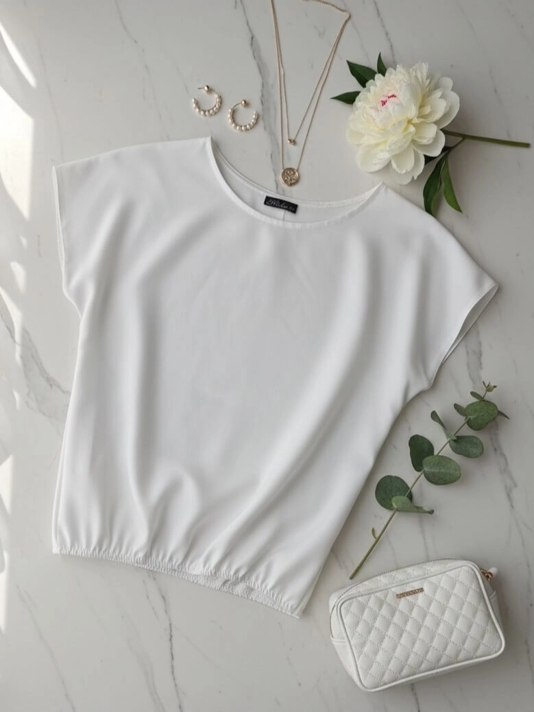 Bluzka Lila od polskiego producenta Madex to idealny wybór, jeśli lubisz rzeczy proste, ale dopracowane. Klasyczny okrągły dekolt, krótki rękaw i sprytna elastyczna gumka na dole sprawiają, że bluzka pięknie układa się na sylwetce i świetnie maskuje okolice brzucha.
