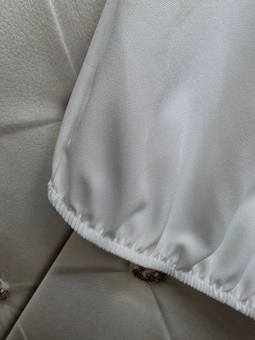 Materiał jest przyjemny, lejący i nie jest mocno elastyczny, dzięki czemu trzyma formę i wygląda bardzo schludnie. Po praniu wystarczy dobrze powiesić - nie wymaga prasowania.