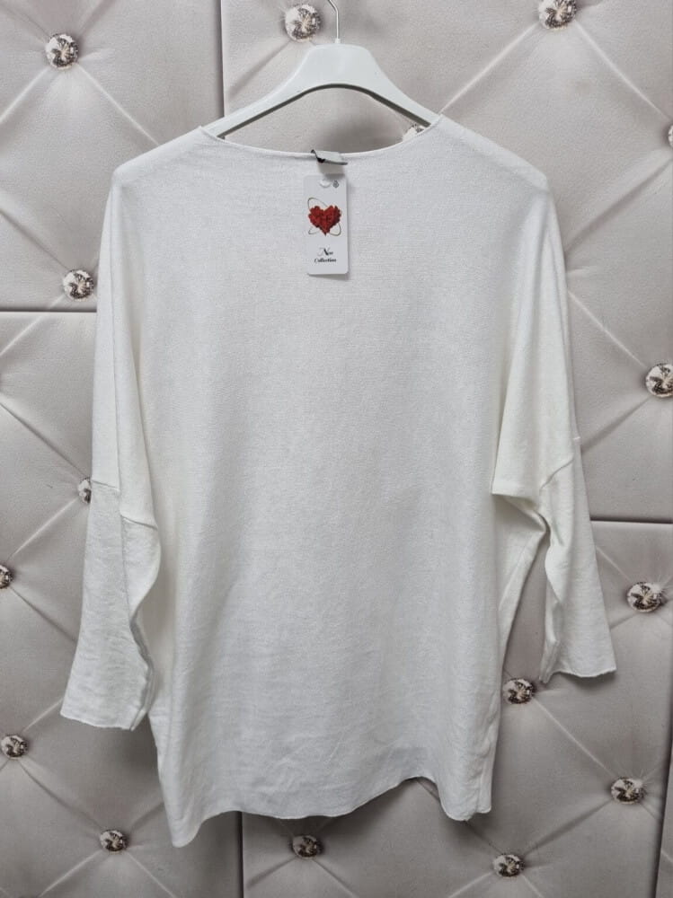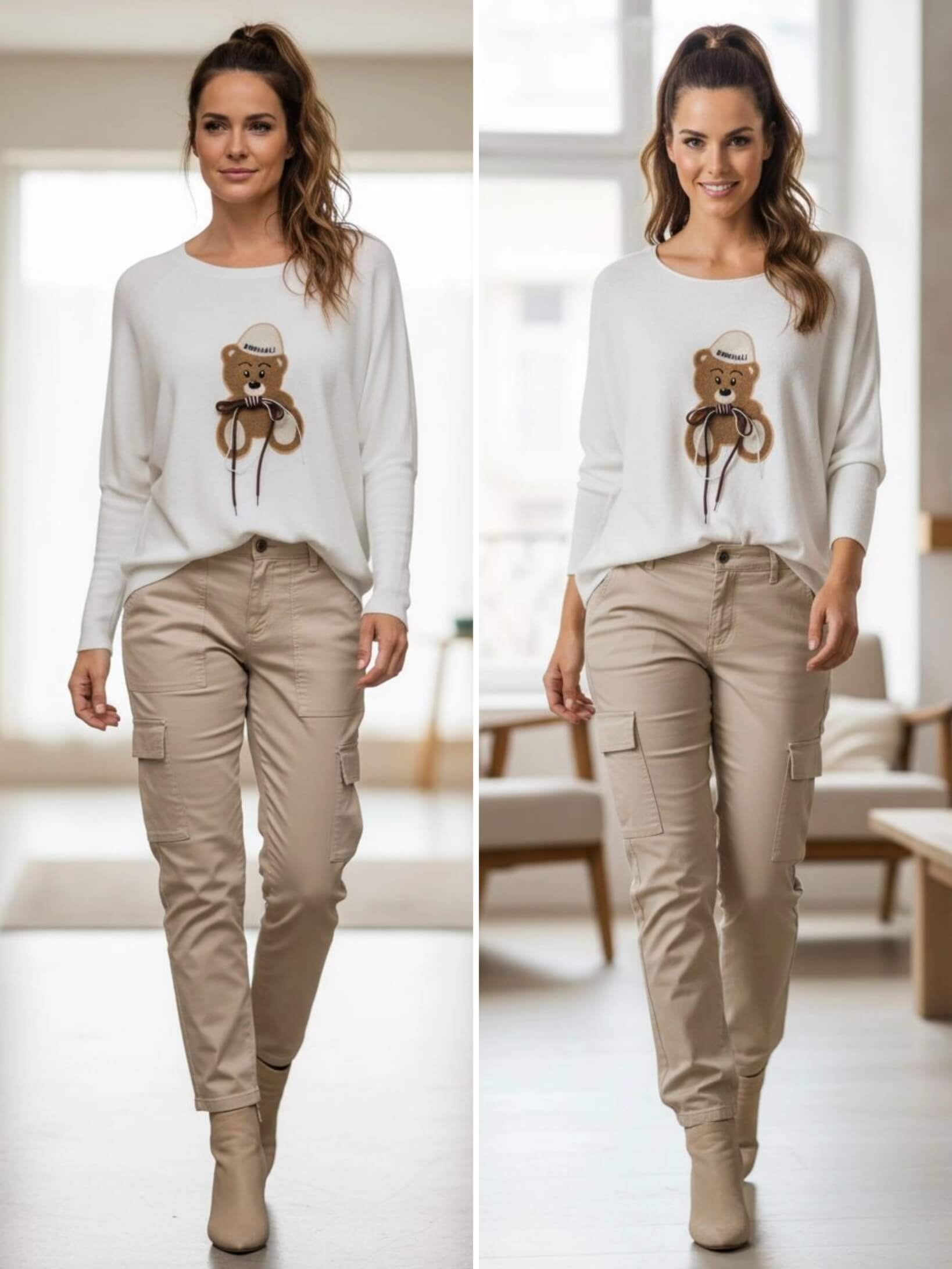 Bluzka Sweterkowa Miś Teddy biała oversize z aplikacją | Butik Szykownia