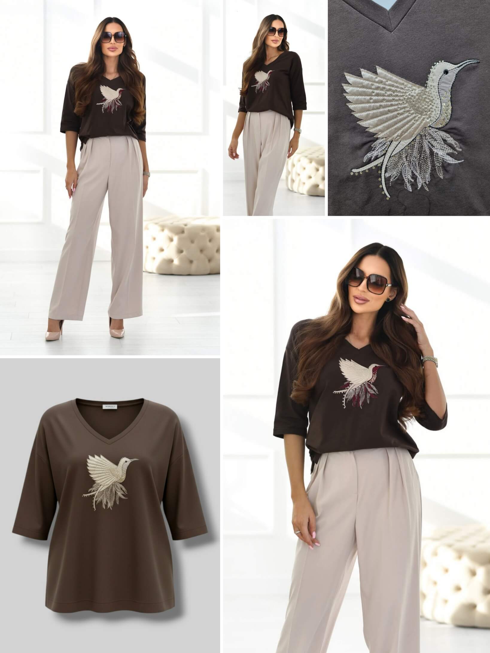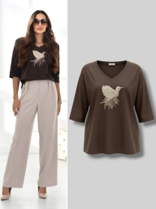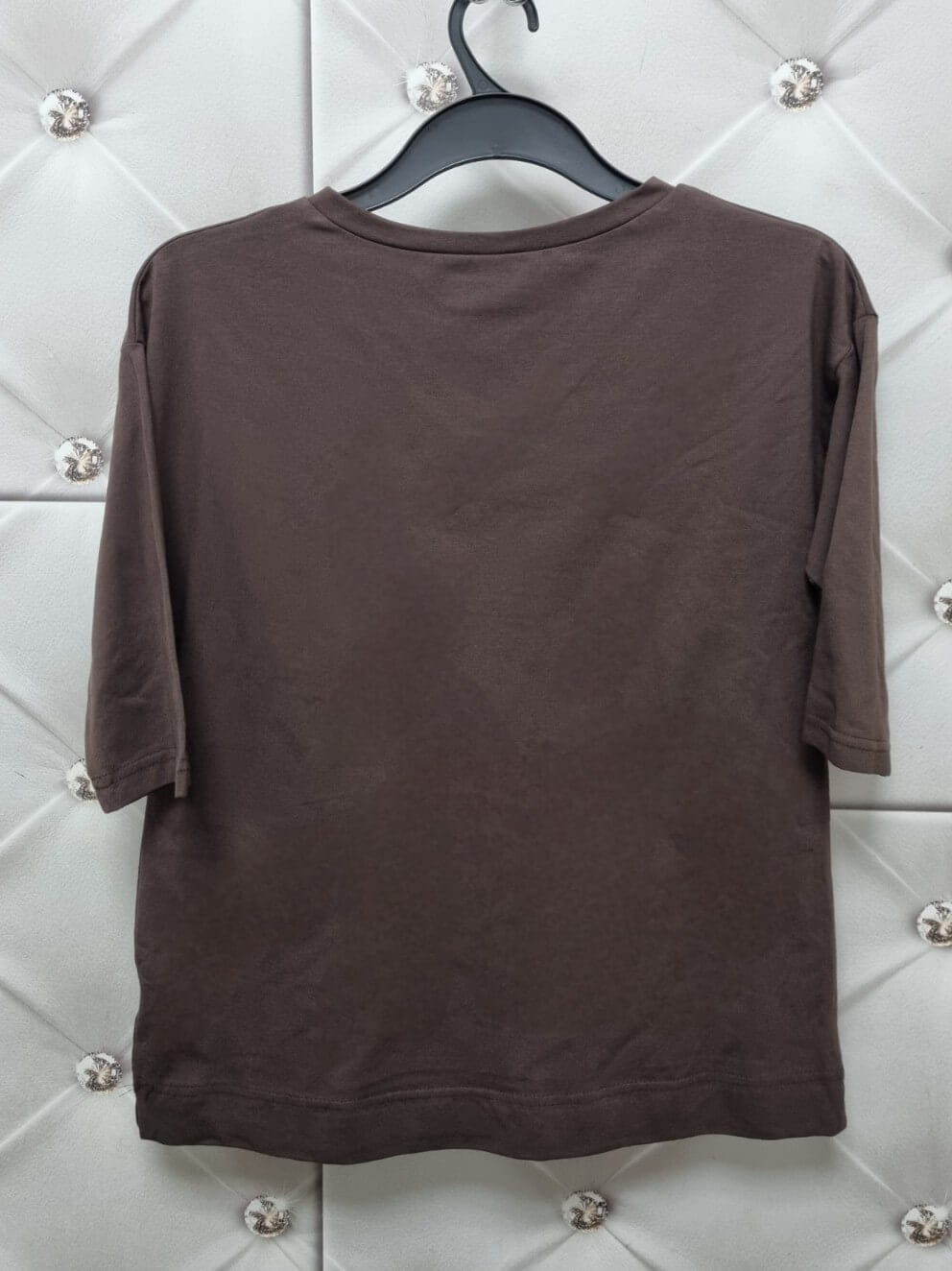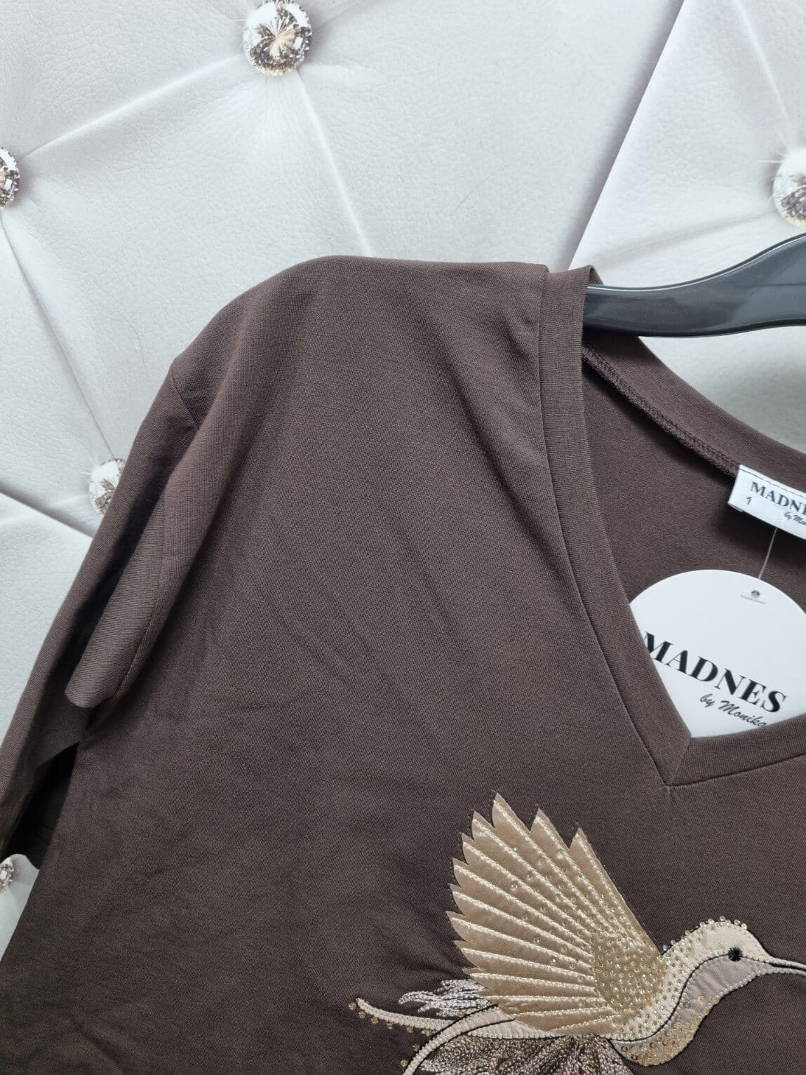 Bluzka Tshirt Madnes Koliber Złoty ciemna czekolada - dekolt V, rękaw 3/4, polska produkcja | Butik Szykownia