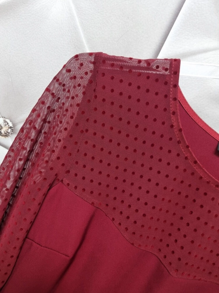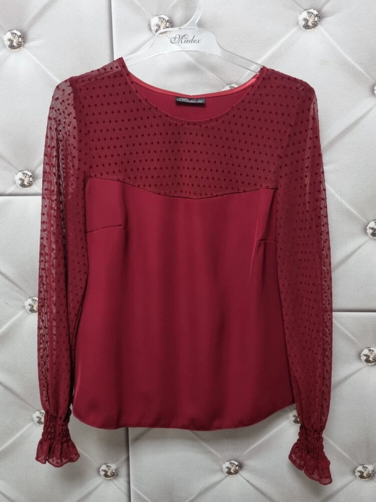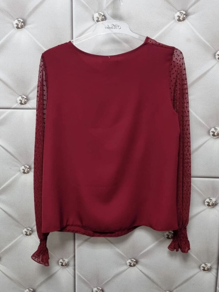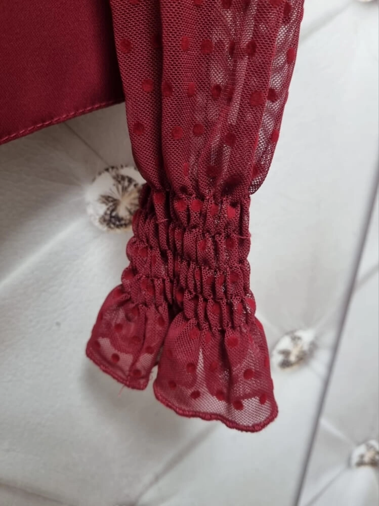 Bluzka Valentina bordowa z tiulem kropki Madex