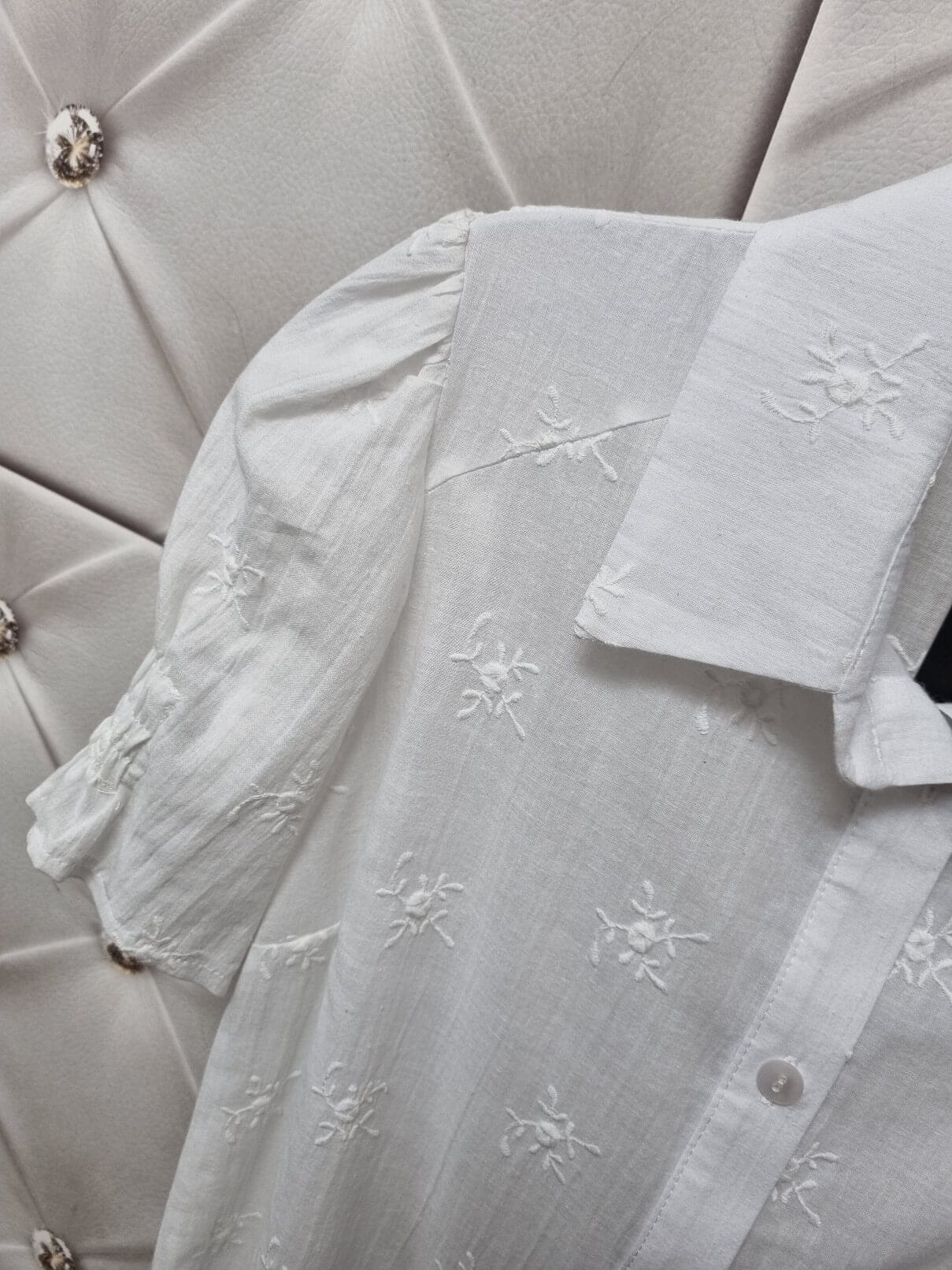 Bluzka Xana Koszula Ażur Krótki Rękaw Biała