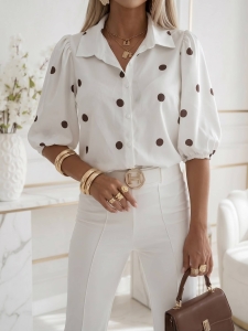 Bluzka koszulowa Novum Menta w czekoladowe kropki rękaw bishop