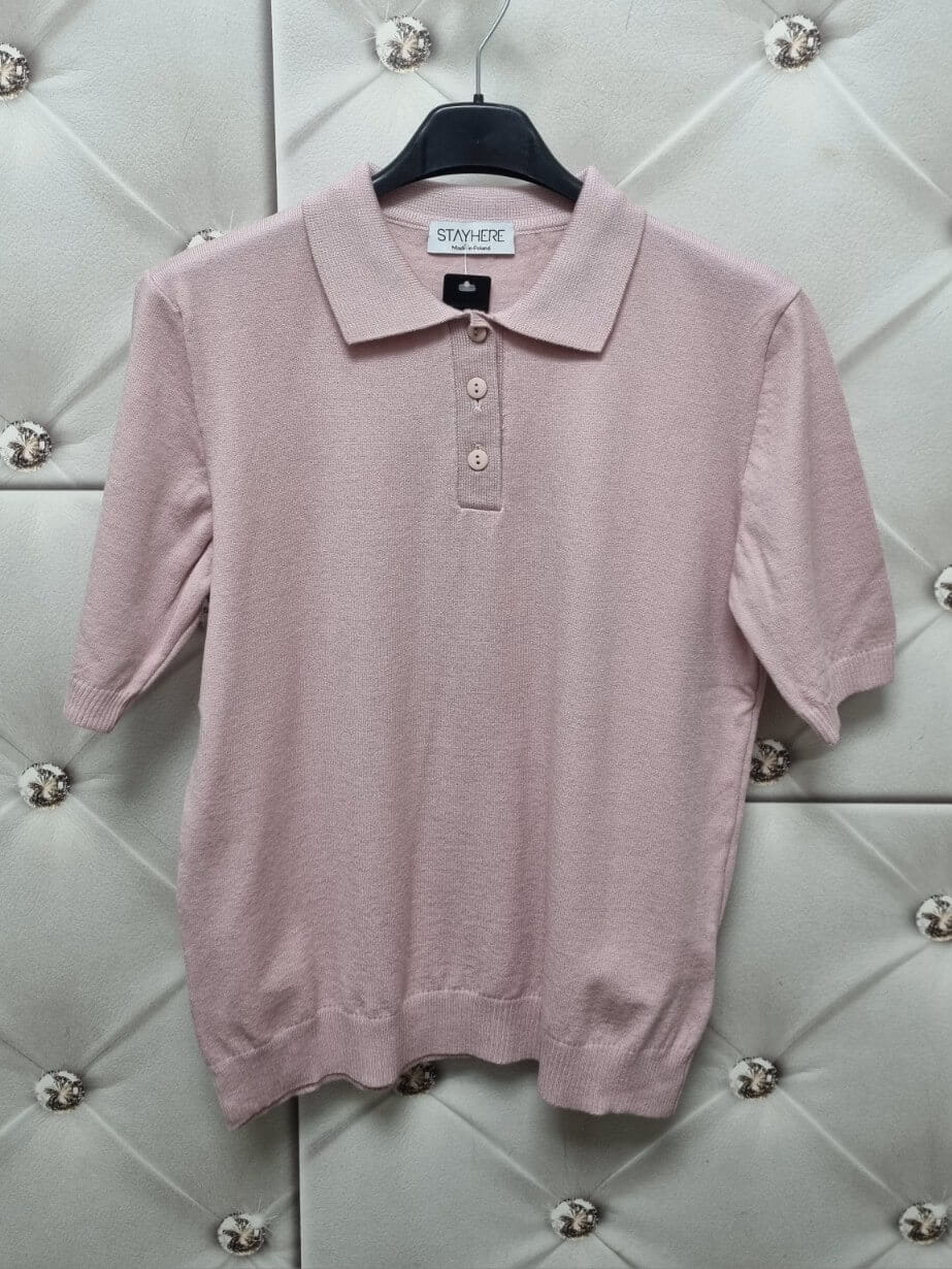 Bluzka sweterkowa polo Classic Stayhere Pudrowy Róż| Butik Szykownia