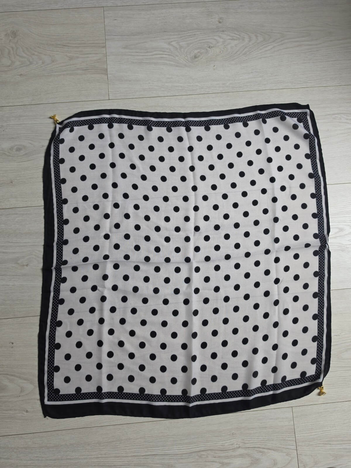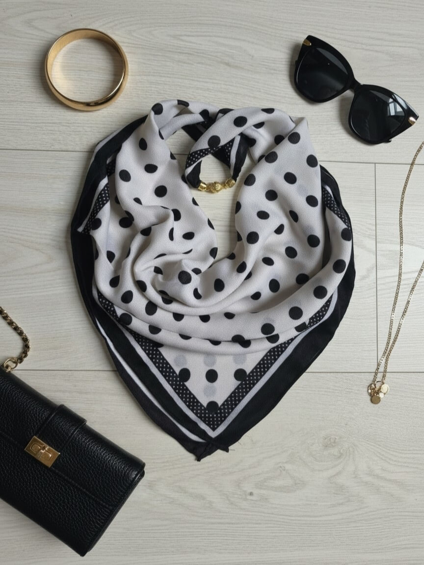 Gawroszka Flow czarne kropki małe i duże biała z magnetycznym zapięciem 65x65 Model 320