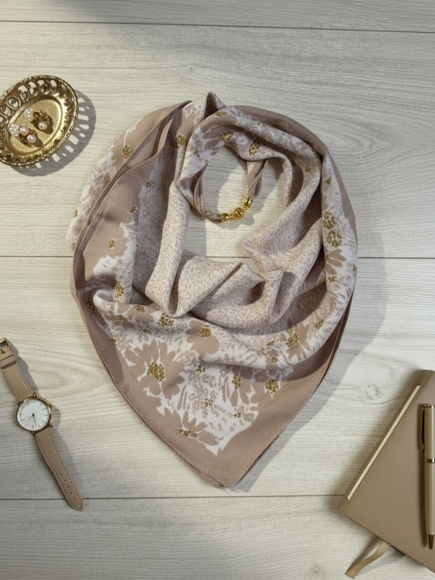 Gawroszka Flow kwiaty białe beżowa z magnetycznym zapięciem 65x65 Model 316