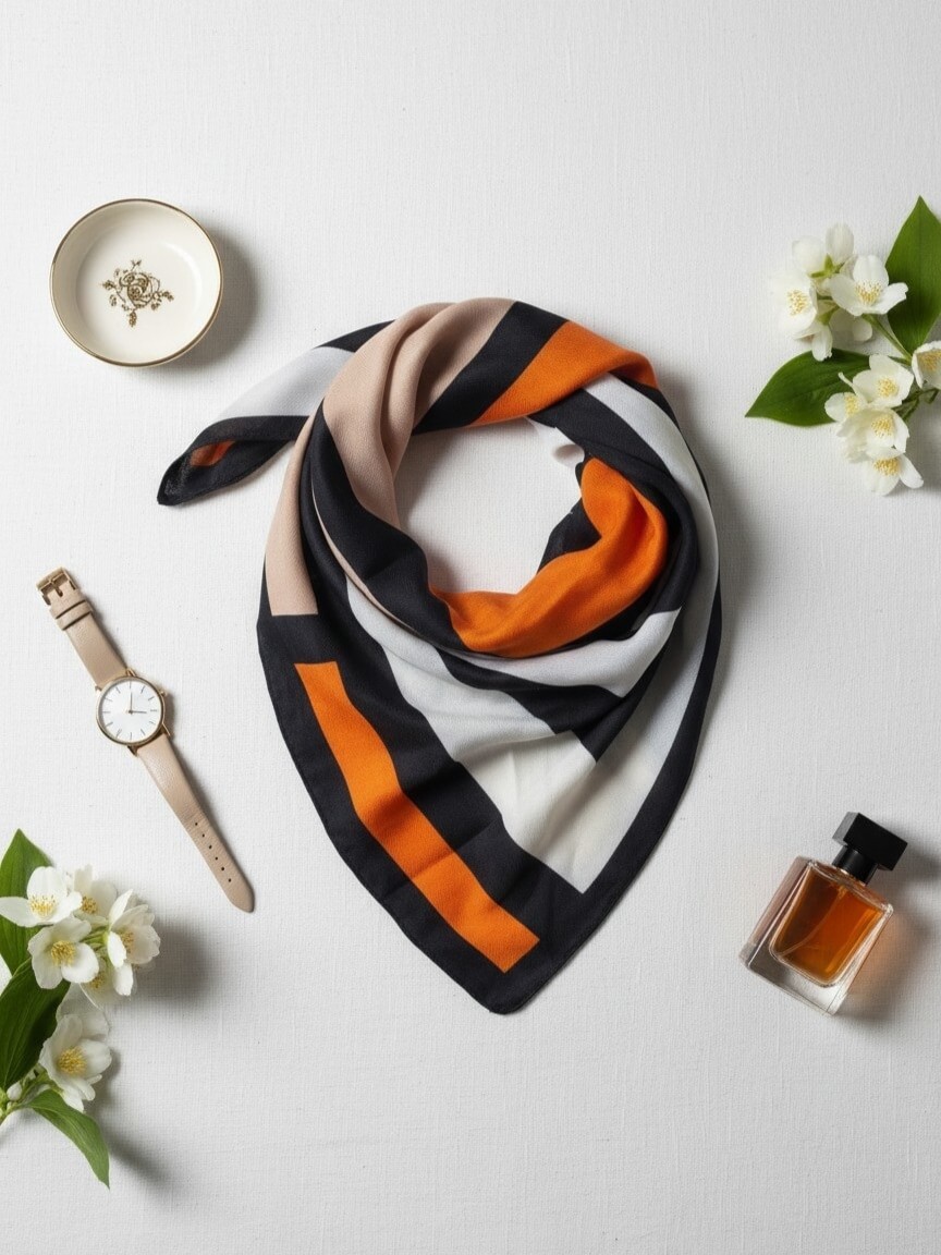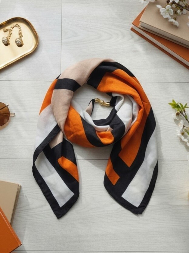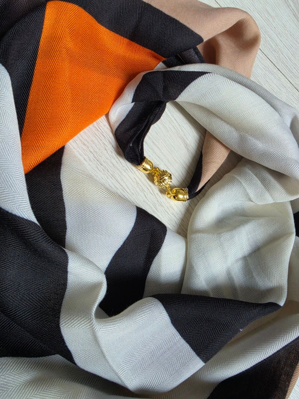 Gawroszka Flow wzory pomarańcz czarny beż z magnetycznym zapięciem 65x65 Model 318
