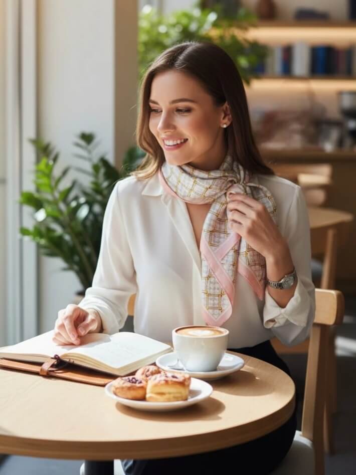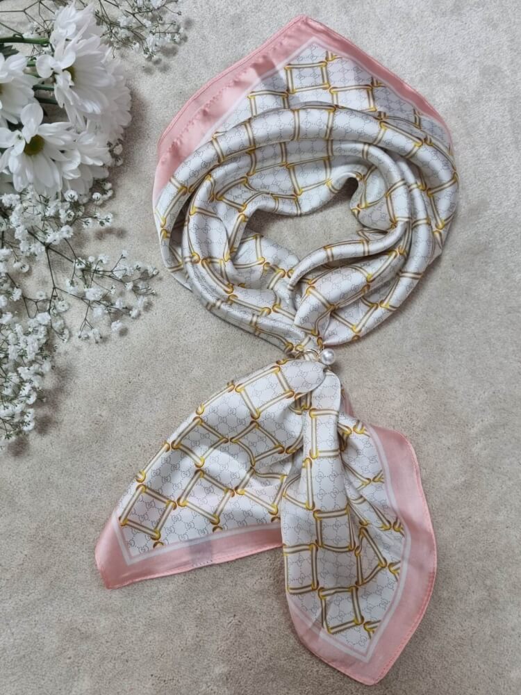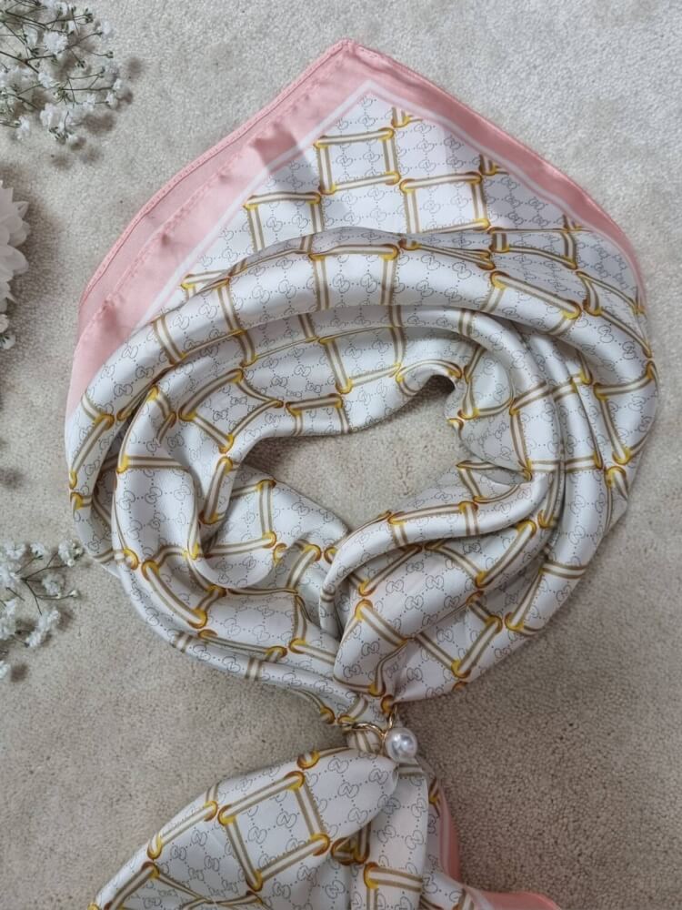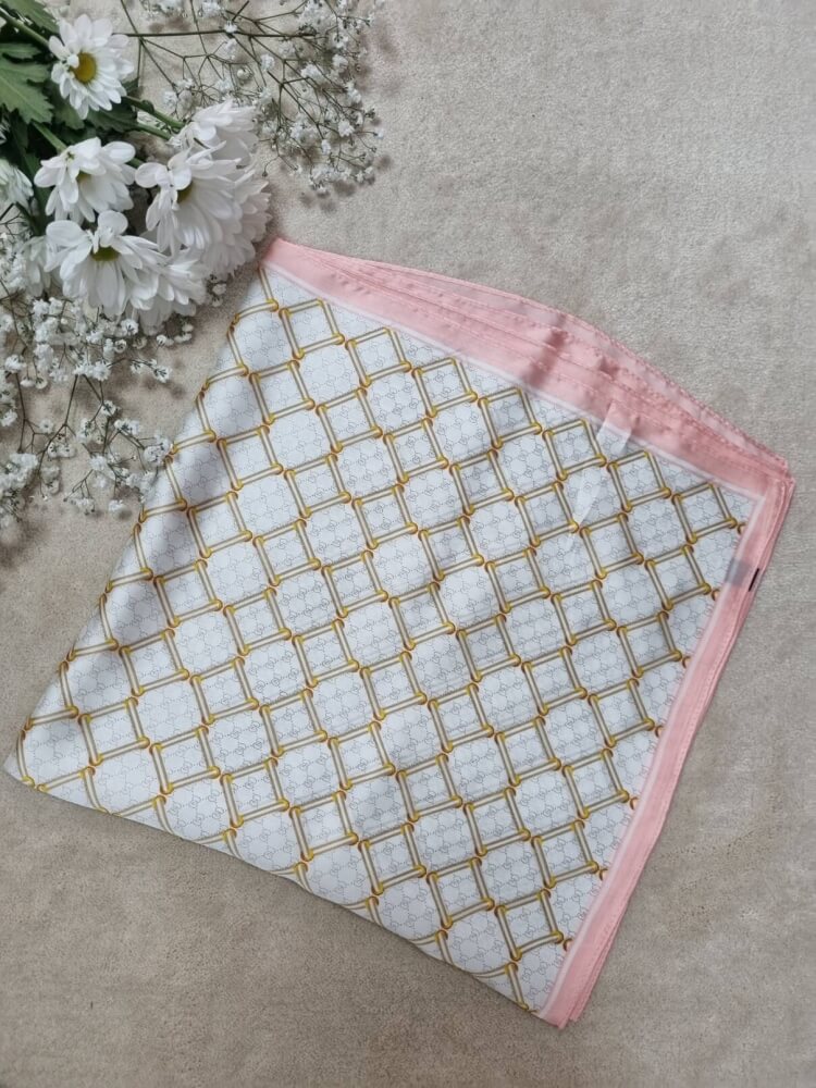 Gawroszka Marine - śliska jak jedwab 70x70 biały-złoty-róż . Model 201.