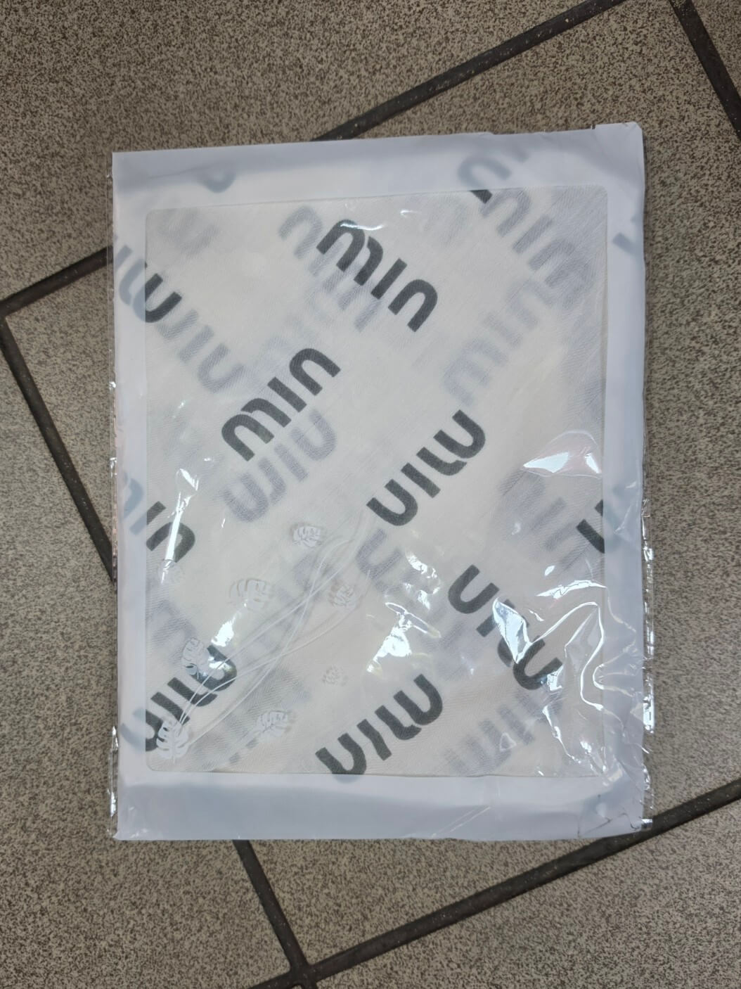 Gawroszka Min biała z magnetycznym zapięciem szare napisy 65x65 Model 303