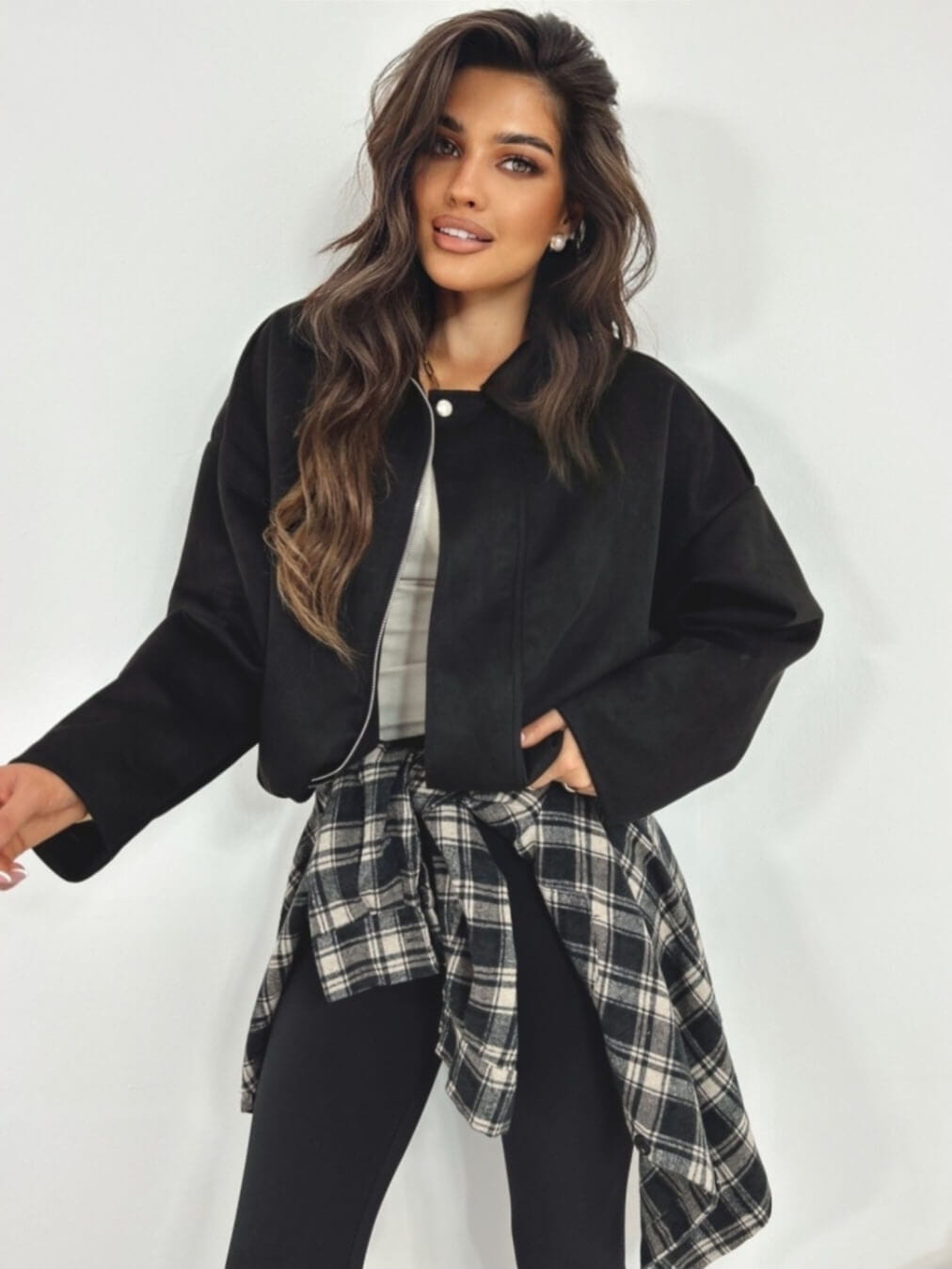 Kurtka Aveline Bomberka Zamsz Przejściówka Czarna