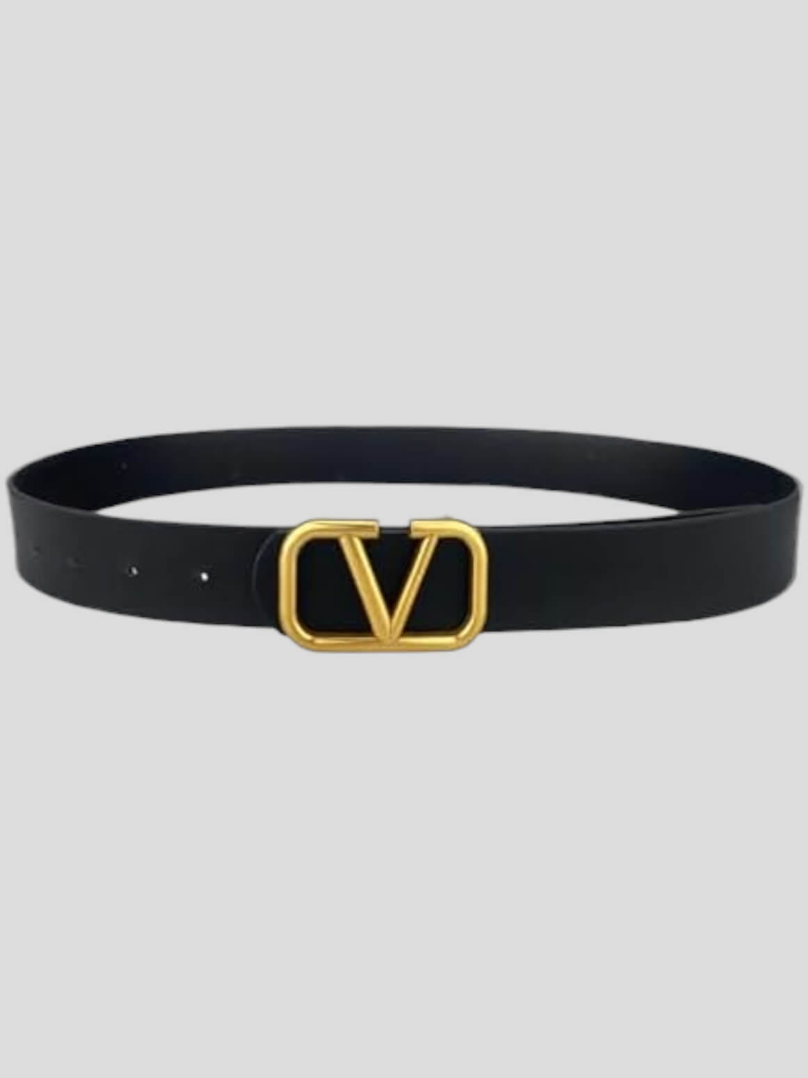 Pasek skórzany ze Złotą Klamrą V Czarny