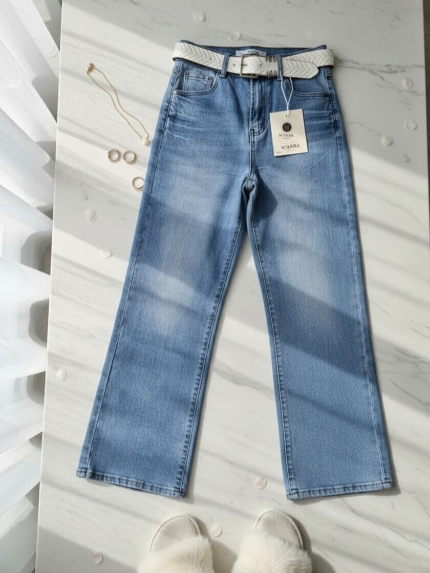 Zalecamy pranie na lewej stronie w niskiej temperaturze, delikatny program oraz unikanie wybielaczy. Suszyć na wieszaku lub na płasko, aby zachować fason i kolor jeansu.
