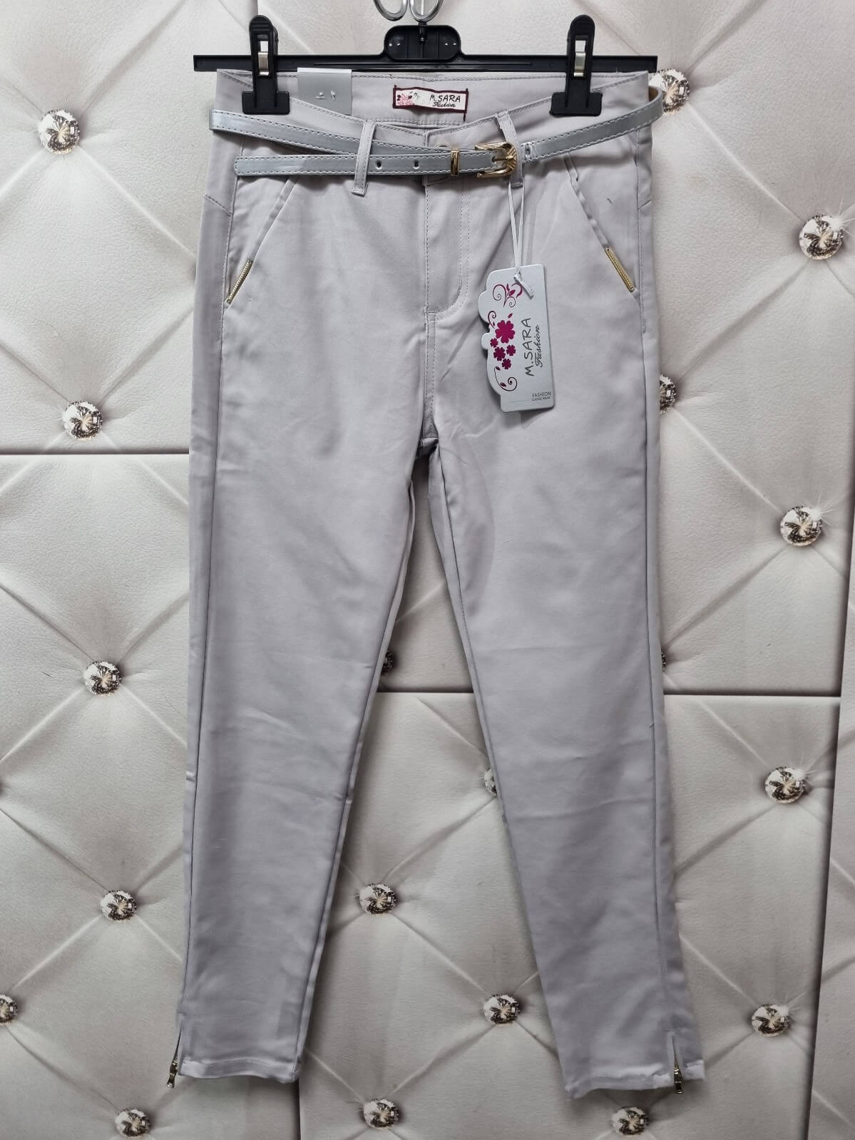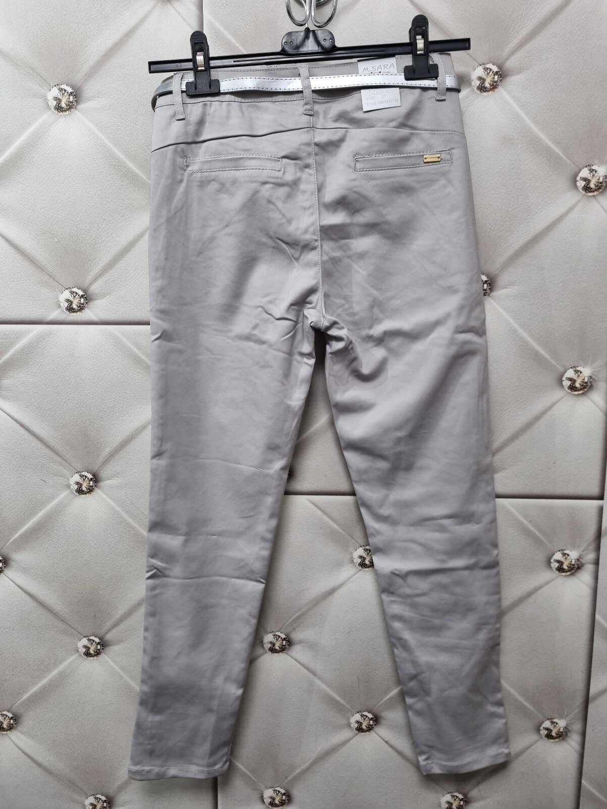 SPODNIE eleganckie z paskiem. Włoskiej produkcji M.Sara. Najnowsza kolekcja tej firmy charakteryzuje się modelami, które są bardzo wygodne oraz świetne się noszą. Najbardziej uwielbiany model spodni, cygaretki posiadają dwie kieszene z przodu z typu ozobne patki. Pasek jest w zestawie. Model pasujący nie tylko do eleganckich rzeczy , możesz go zestawić z czym tylko chcesz. Nogawki 7/8.