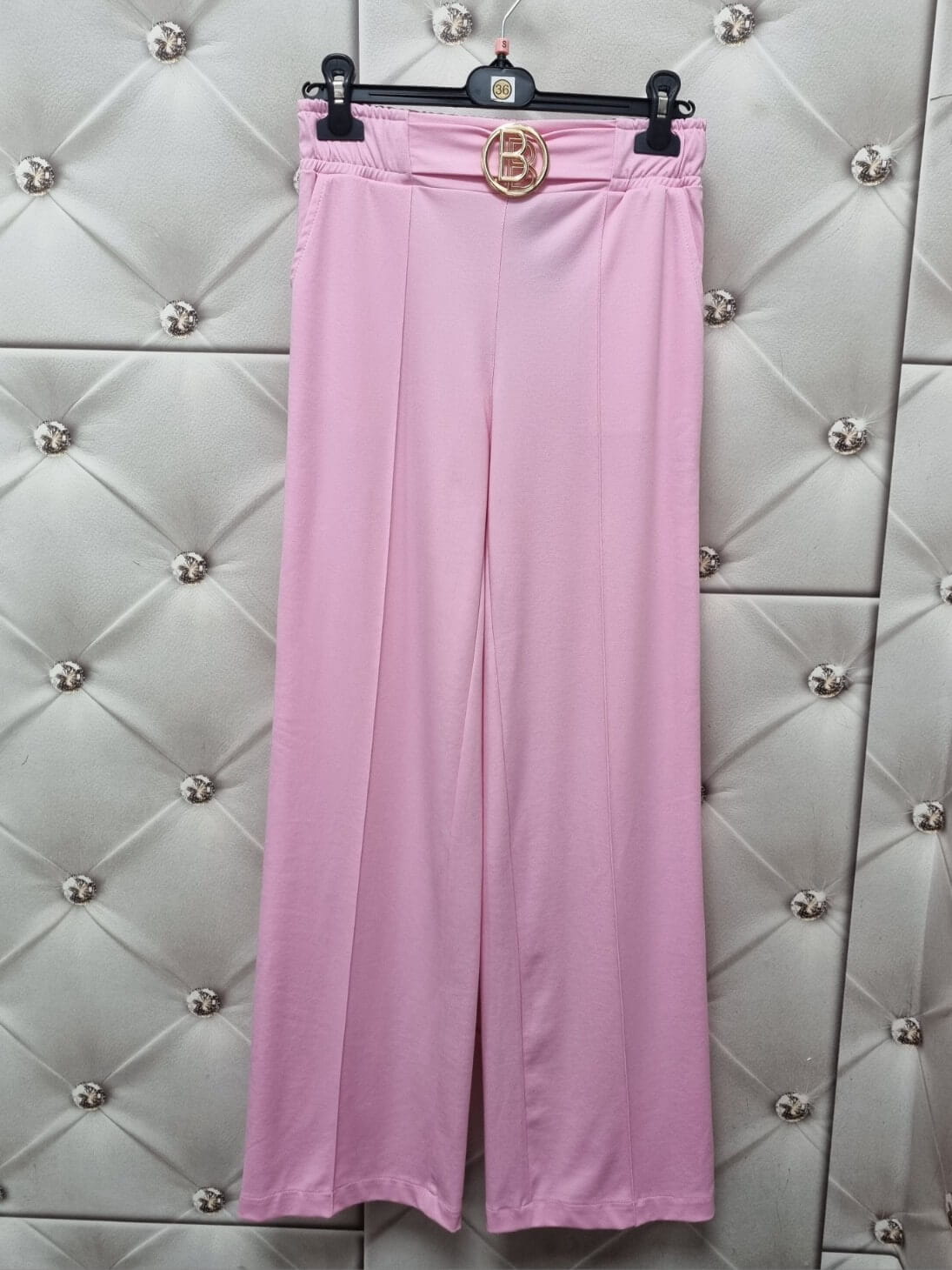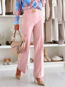 Spodnie Novum z klamrą BB Pudrowy Róż szerokie polska produkcja | Butik Szykownia