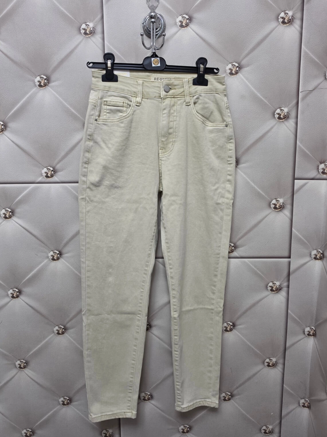 Spodnie Re-Dress RE3101-2 - jasnobeżowe jeansy Mom Fit