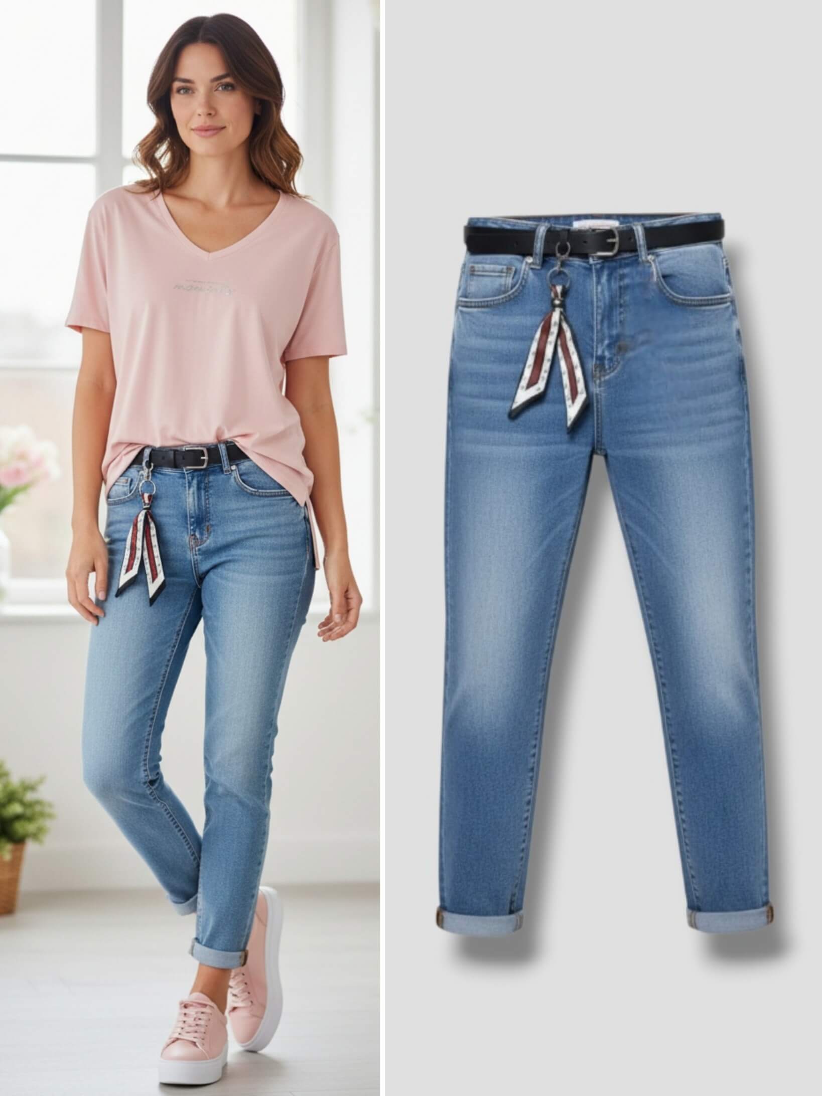 M.Sara BF2999-5 - jeansy Mom Fit z paskiem i apaszką
